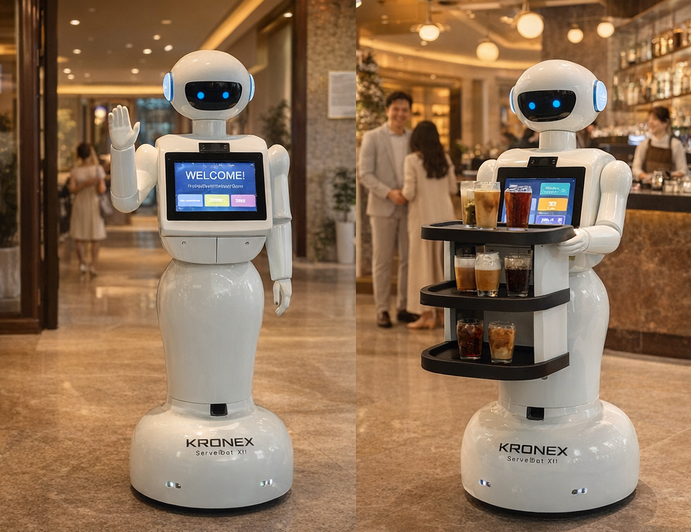 Kronex ServeBot™ X1 is a next-generation AI-powered service robot designed to transform modern hospitality and business operations